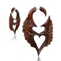 As our favorite material, narra wood brings a bunch of inspiration to improve our creativity in making jewelry design. Indeed, wooden material has unique texture and color, meanwhile it also performs strong composition to build body jewelry. Our latest wholesale collection presents such an exquisite wood fake piercing. A narra wood fake piercing expander is designed eccentrically with contemporary touch that carving a shape of angel heart as attractive details on design.