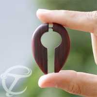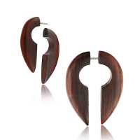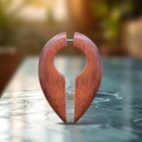 Keyhole shaped fake wood piercing expander made from dark brown Narra wood. Using a 0.8mm surgical steel post that fit standard pierced ears, for people who want to wear organic wood piercing without stretching the holes for big gauge piercing.