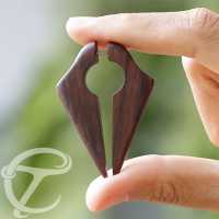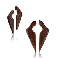 Keyhole shaped fake wood expander carved from dark brown Narra wood. Using a 0.8mm surgical steel post fitting standard pierced ears, for customers who want to wear organic body jewelry without stretching their holes for big gauge piercing.