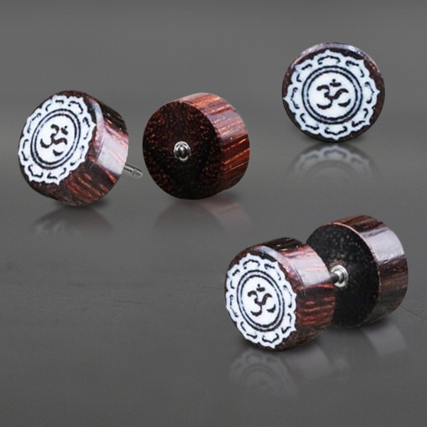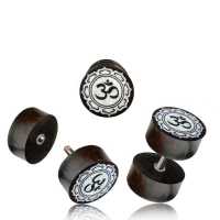 Organic Body Jewelry FWP 241 - Tamarind wood Om fake plug with bone inlay. is sold