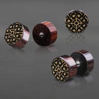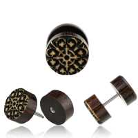 This Moroccan inspired fake plug piercing is hand-carved from dark brown tamarind wood with a crocodile wood inlay. As this organic piercing design has been so popular as a wooden ear-plug we now decided to make it available as a fake piercing as well.