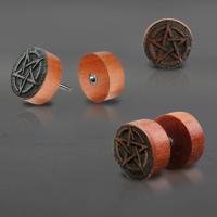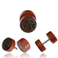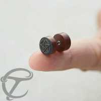 This pentagram piercing jewelry design is nothing new but we have just brought it to another level by creating this highly detailed fake piercing plug. Hand made from fine grain Sawo wood then expertly engraved to perfection by our organic jewelry craftsmen.