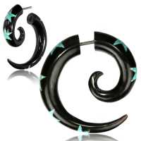One of our fake piercing products come with the concept of horn to emphasis the tribal style. A turquoise inlayed horn spiral is unexceptionally fabulous wood piercing that will highlight your appearance to the next level. Horn is perfect form to transfer such exoticism to our wholesale piercing product.