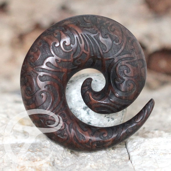 Organic Body Jewelry WEW 015 - Engraved Narra Wood ear weight is sold