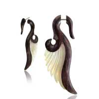 If you love to wear an artistic piece of organic body jewelry, we have the best choice for you. Made from the ultimate quality of sono wood with carved mother of pearl, this fake piercing is nothing but the most qualified piercing jewelry ever. The perfect combination of wood and mother of pearl in this organic piercing ornamentation will cheer up your gloomy day and boost your mood. The wing carving of this piercing ornamentation is definitely more than just stunning!