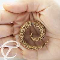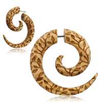 A tribal fake wood piercing made from a wooden spiral expander that we engrave with leaves and branches to give it. a natural look. A great addition to our wholesale organic body jewelry assortment.