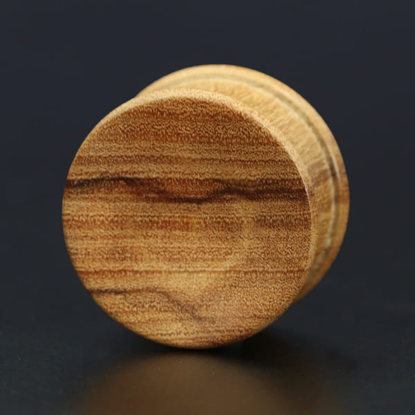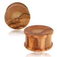 Description: Olive wood single con-caved ear plug.
