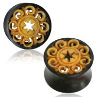This earplug is truly a sight to behold when it comes into an authentic ethnic art. It features a tribal carved antiqued bone inlay embraced by a jet black Arang Wood. With a combination of elegant colors, this piece of piercing jewelry is ultimately perfect and eye-catching to be worn in both formal and casual occassions. This absolute mastercraft is surely not be missed.