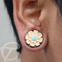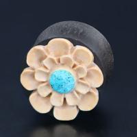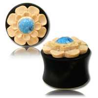 Description: Arang wood plug with turquoise and young coco-shell inlay.