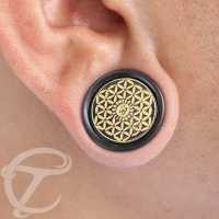 This organic body jewellery has a futuristic but simple ornament that is vey popular amongst the teenagers and the adults. Express your mood with this ethnic body jewellery which combines iron wood with a touch of golden coloured paint. This ethnic jewellery has a design of the flower of life painted with the golden colour so it will definitely stand out from your ears. Wear this organic wooden plug on a special occasion.