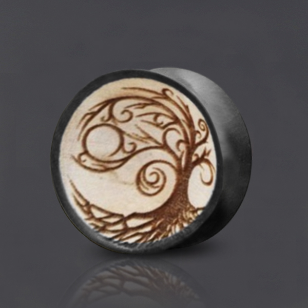 Organic Body Jewelry WPL 427 - Two tone arang tree of life wood plug is sold