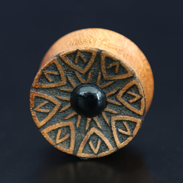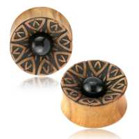 Organic Body Jewelry WPL 447 - Teak wood plug with Onyx is sold