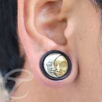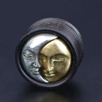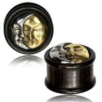Organic Body Jewelry WPL 464 - Arang wood with brass. Moon and sun plug is sold