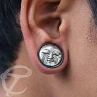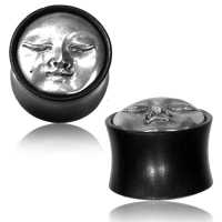 Organic Body Jewelry WPL 470 - Arang wood with white brass moon earplug is sold