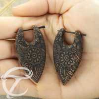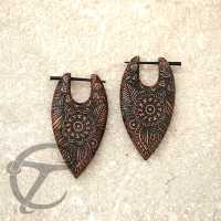This Indian motif tribal earring has been hand carved from Saba wood then engraved in our own organic jewelry work shop. Another top seller in our wholesale organic jewelry assortment.
