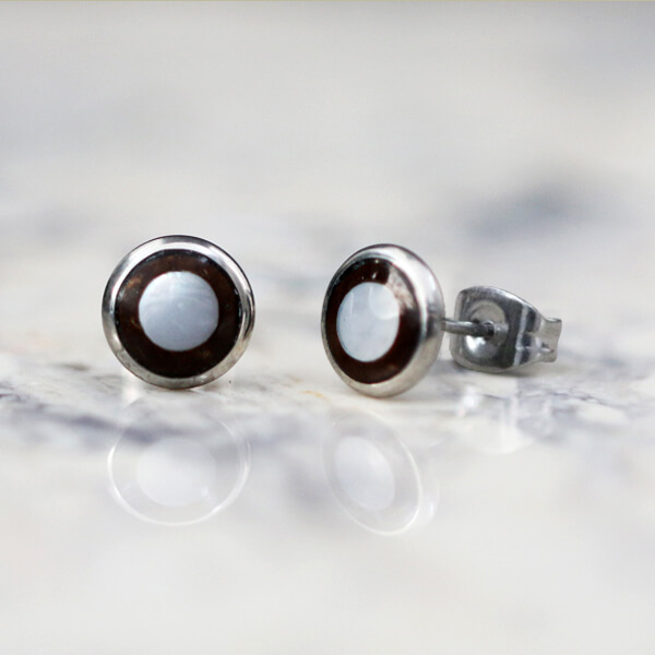 Organic Jewelry MST 105 - Steel with coco-shell mother of pearl ear stud is sold