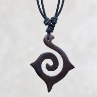 Organic Jewelry PD 0834 - Brown narra wood pendant with cotton cord necklaces (free size) is sold
