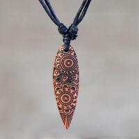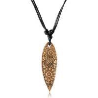 Engraving this Sawo wood surfboard pendant with a tribal flower design completes this one of a kind surfboad necklace. Just one out of many wooden surf necklaces from our wholesale surf jewelry selection.
