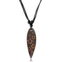A Sawo wood surf pendant that we engrave with Hawaiian Hibiscus flowers to create a classic surf jewelry design. Definitely one of the highlights in our wooden surfboard necklace wholesale collection.