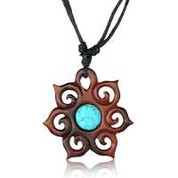 The casual impression captured from this flower shaped organic wooden pendant can surprise any trendsetting customer in such a way. Diverse craftsmanship can be found from this singular tribal jewelry. Even better, our creative artisan even added a turqouise stone in the centre of its design making the tribal jewelry a better look. This wholesale organic pendant is a favour of sophisticated customers that come to your shop. Indeed, this ethnic jewelry is exotic and impressive.
