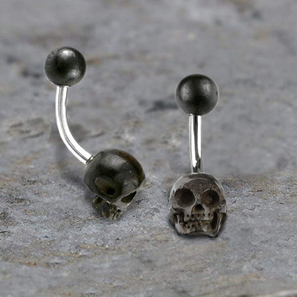 Steel Piercing BKNB 135 - Carved Bone Skull with 1.6mm 316L surgical steel navel bar is sold