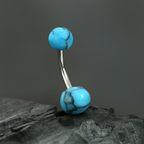 Description: Turquoise and 316L steel navel bar.