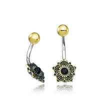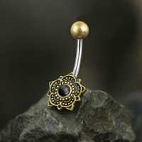 Steel Piercing BNB 022 O - Brass and 316L steel navel bar with onyx is sold