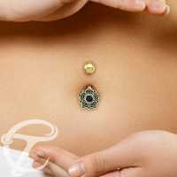 Description: Brass and 316L steel navel bar with onyx