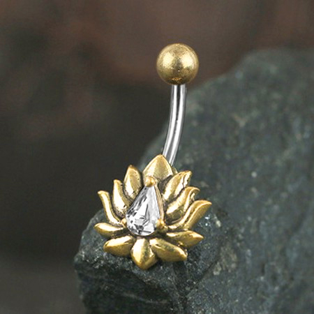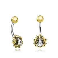 Steel Piercing BNB 054 CZ - Brass and 316L steel navel clear crystal is sold