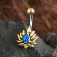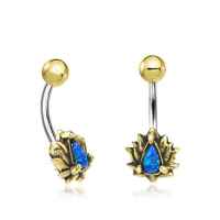 Steel Piercing BNB 054 OB - Brass and 316L steel navel blue opal is sold