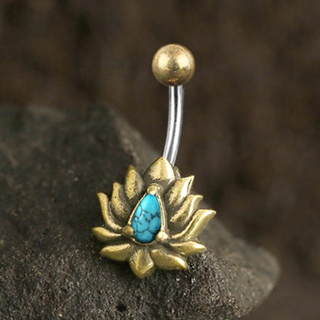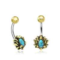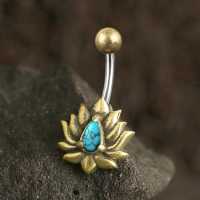 Description: Brass and 316L steel navel turquoise