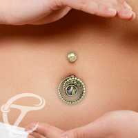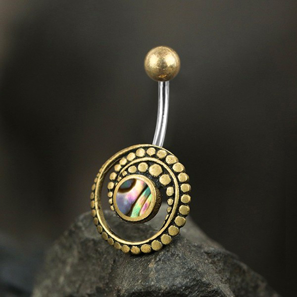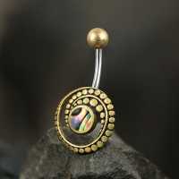 Description: Brass Navel Bar With Abalone