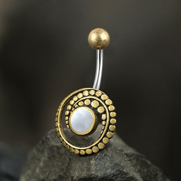 Description: Brass Navel Bar with MOP