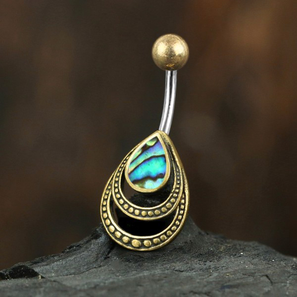 Steel Piercing BNB 103 AB - 316L Steel / Brass Navel Bar with abalone is sold
