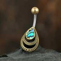 Description: 316L Steel / Brass Navel Bar with abalone