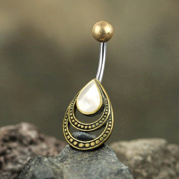 Steel Piercing BNB 103 MP - 316L steel / Brass Navel Bar with MOP is sold