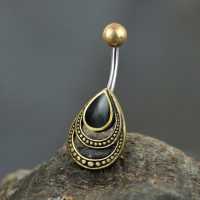 Steel Piercing BNB 103 O - 316L Steel / Brass Navel Bar with Onyx is sold