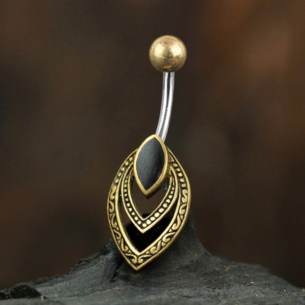 Description: 316L Steel / Brass Navel Bar with onyx