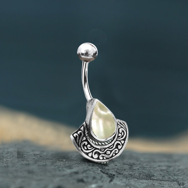 Steel Piercing BNB 108 MP - 316L Steel / Brass Navel Bar with MOP is sold
