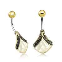 Description: 316L Steel / Brass Navel Bar with MOP