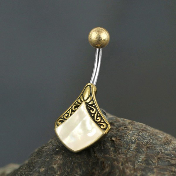 Steel Piercing BNB 109 MP - 316L Steel / Brass Navel Bar with MOP is sold