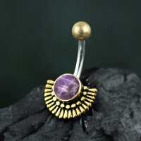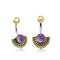 Steel Piercing BNB 122 AM - 316L Steel / Brass Navel Bar with Amethyst is sold