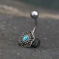 Steel Piercing SNB 021 TQ - 925 Silver and 316L Steel navel bar with turquoise is sold