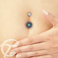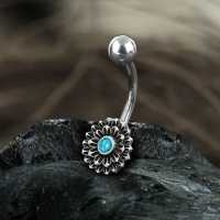Steel Piercing SNB 031 TQ - 925 Silver and 316L Steel navel bar with turquoise is sold