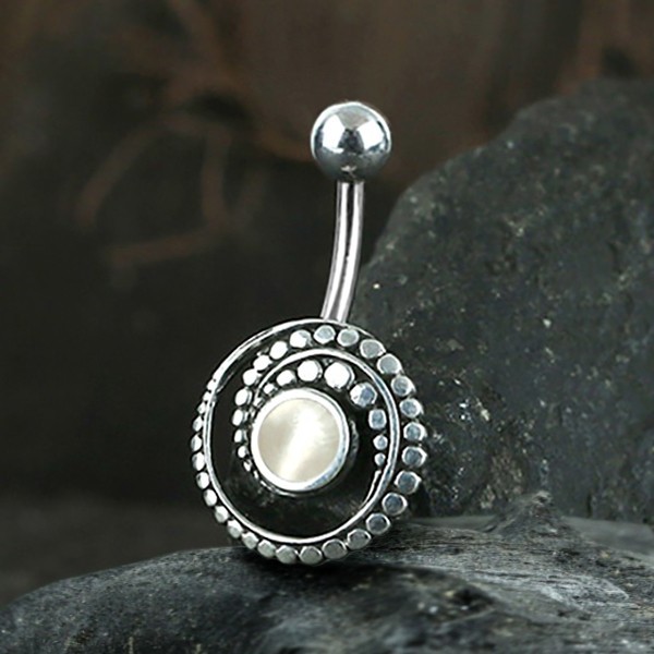 Description: Silver and 316L Steel navel bar with MOP