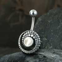 Steel Piercing SNB 100 MP - Silver and 316L Steel navel bar with MOP is sold