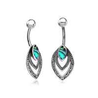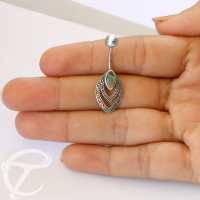 Description: Silver and 316L Steel navel bar with Abalone