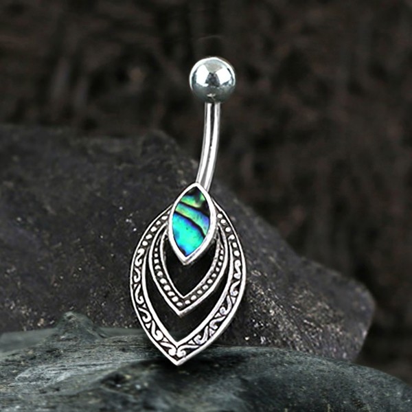 Steel Piercing SNB 104 AB - Silver and 316L Steel navel bar with Abalone is sold
