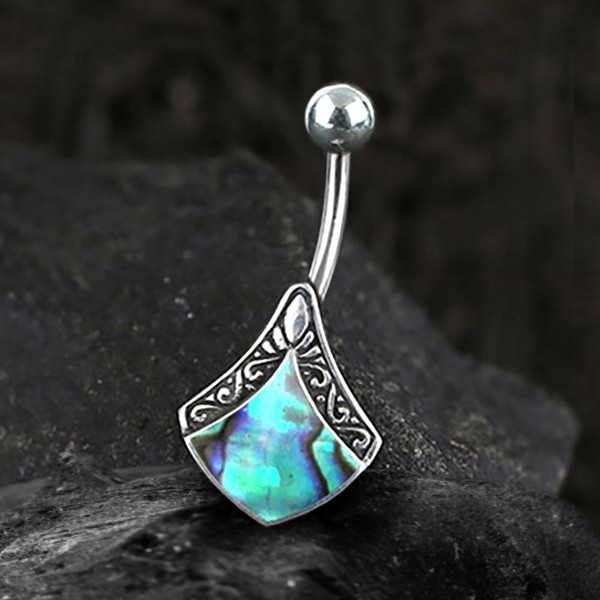 Description: Silver and 316L Steel navel bar with Abalone
