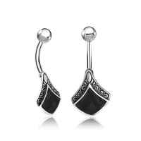 Steel Piercing SNB 109 BK - Silver and 316L Steel navel bar with black of pearl is sold